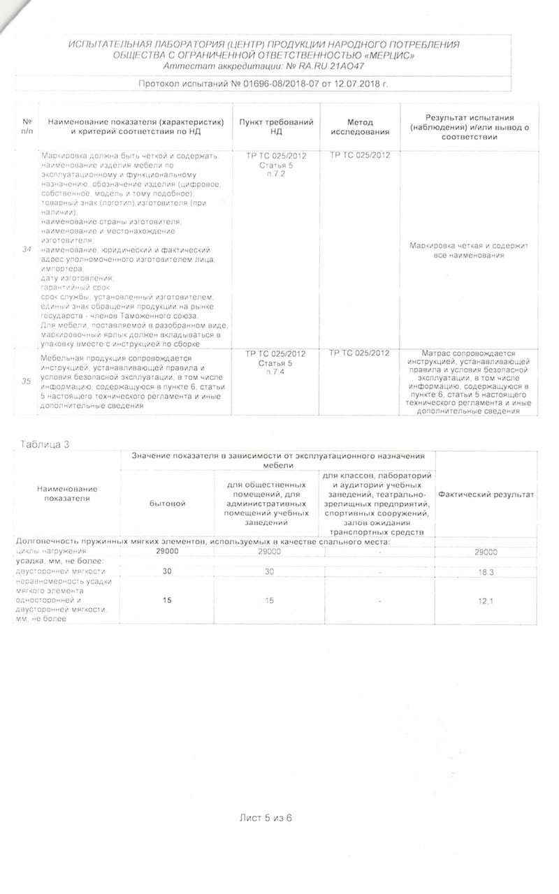 Состав матраса